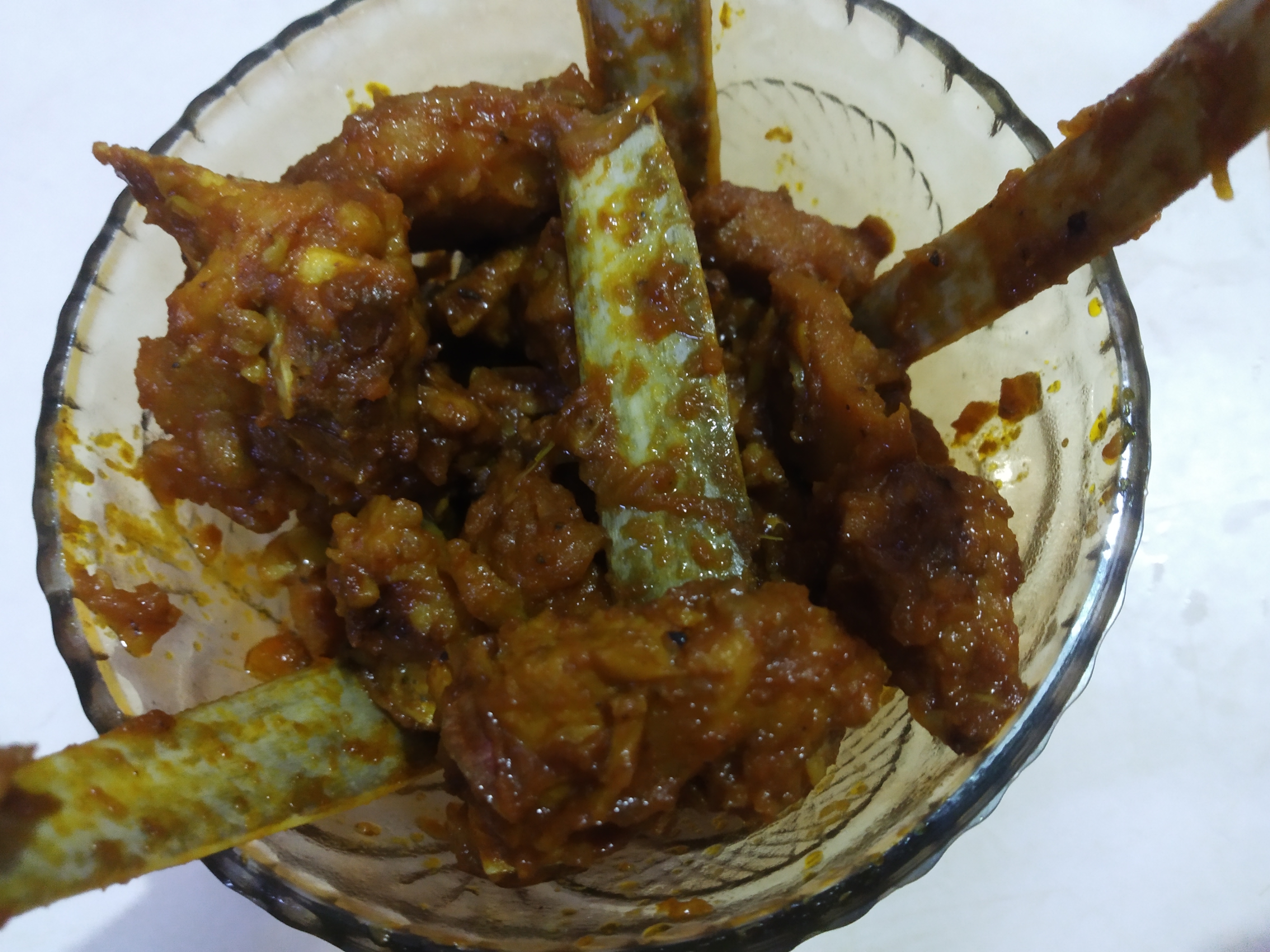 Wash mutton Chaap thoroughly, heat oil over pan. Add chopped onion in it. Saute it well until it becomes golden brown colour. Now add the mutton chaap and wait for 2 minutes and then add Ginger Garlic paste. Now make sure that the raw smell of Ginger Garlic paste went off. Put stove slim for 5 min. This is the time to add chilli powder and turmeric powder into it. And pour water in it. Leave it for 8 min and add smashed pepper and garlic cloves into it. Finally put stove on slim for 20 to 25 min. Squeeze half lemon before doing put off stove.